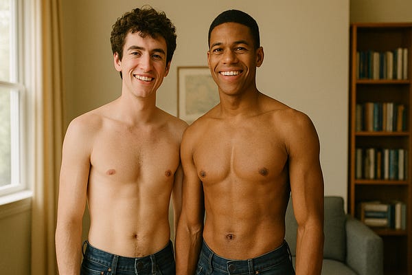 Graham reached down with his free hand and played with the sensitive, precum-covered foreskin that covered his throbbing head.
